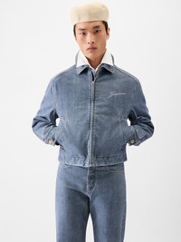 Zipped denim jacket - Boxy fit - Washed cotton denim - Pointed collar - Contrast bartacks - Zipped closure with long puller - Laser-printed logo on the chest - Long sleeves - Large welt pockets - Contrast horn buttoned cuffs - Embroidered patch on the back - Back yoke The model is 189cm and wears a size 48 Made in Italy Ref. OUM00055AD00042330