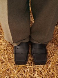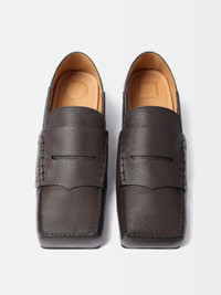 Square loafers - Convertible loafers in soft-grained leather - Designed to be worn as a classic loafer or a folded mule - Square toe - Wide penny-keeper - Exposed hand-stitched seams - Embossed logo on insole - Lambskin insole and lining with circle and square pads - Leather sole To protect the leather soles of all shoes, a transparent protective film has been applied to each sole. To remove it, please follow the direction of the arrow in order not to damage the leather sole. Made in Italy Ref. FOW00147AC03C05880