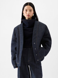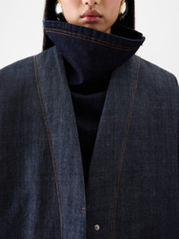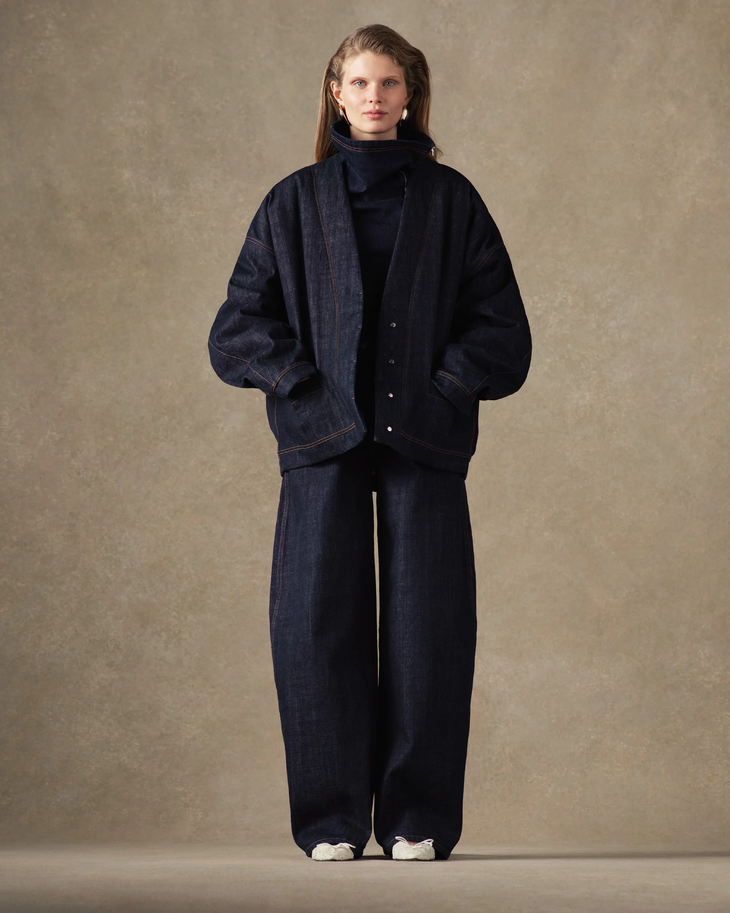 Denim cardigan - Oversized fit - Rinsed raw indigo denim - Contrast stitching - V-neckline - Rounded sleeves - Hidden snap button closure - Welt pockets - Embroidered “J” on the sleeve - Fully lined with faux fleece The model is 177cm and wears a size 42 100% Cotton / Lining: 70% Polyester - 20% Virgin Wool - 10% Acrylic Made in Romania Ref. OUW00112AD00036390