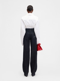 Curved cargo jeans - High-rise - Dark navy cotton denim - Long curved leg - “J” belt loop - Zip fly - Four pockets including two cargo pockets - Front zipper on each leg - Contrast stitching and bartacks - Embroidered patch on back waistband - Laser printed signature logo The model is 177cm and wears a size 24 100% Cotton / Lining: 65% Polyester - 35% Cotton Made in Italy Ref. 251DE062-1782-390