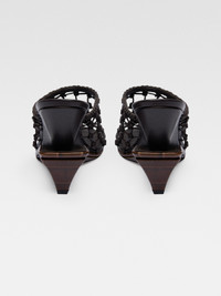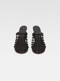 LA CROISIERE Braided double mules - Hand-woven double wedge mules in two-tone leather - Braid upper in smooth lambskin - Round toe - Bottom wedge sole in crocodile-embossed leather - Lambskin insole and lining with circle and square cushions - Embossed logo on insole - Leather sole - Heel height: 11cm - Instep: 10cm To protect the leather soles of all shoes, a transparent protective film has been applied to each sole. To remove it, please follow the direction of the arrow in order not to damage the leather sole. 100% Lambskin / Sole: 100% Cowskin Made in Italy Ref. 251FO165-4301-880