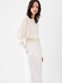 Embroidered knit sweater - Relaxed fit - Merino wool knit - Ribbed collar, cuffs and hem - Overlock stitching below the collar - Long loose sleeves - Embroidered logo on the back The model is 179cm and wears a size 34 96% Merino Wool - 4% Polyamide Made in Portugal Ref. SWW00632AK00299110