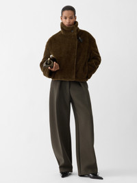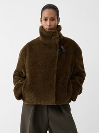 Faux fleece jacket - Oversized fit - Faux fleece - Stand collar with corozo button - Long sleeves - Rounded shoulders - Asymmetric closure with toggle and leather loop fastener - Hidden snap buttons - Side welt pockets - Jacquemus Rosemary label in the back - Fully lined The model is 176cm and wears a size 36 100% Polyester / Lining: 52% Viscose - 48% Cotton Made in Bulgaria Ref. OUW00098BW00543580
