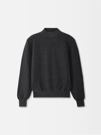 Round neck sweater - Wool sweater - Round neck, long sleeves - Boxy fit - Jacquard knit with herringbone pattern - Plain wool ribbed edges - “J” embroidery on the side The model is 187 cm and wears a size M 57% Virgin wool - 37% Viscose - 5% Polyester - 1% Polyamide Made in Italy Ref. SWM00613AK00281970