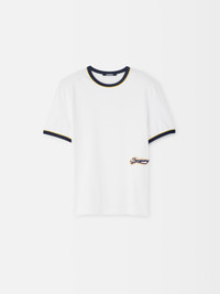 Short-sleeved t-shirt with embroidered patch - Slim fit - Short sleeves with contrasting ribbed trim - Crew neck with contrasting ribbed trim - Embroidered logo patch on the left side The model is 187cm and wears a size M 100% Cotton Made in Portugal Ref. TSM00561AJ001701KY