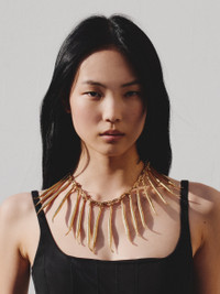 Bean charm necklace - Bean charm necklace in gold-toned brass - Adjustable - Engraved logo charm - Aged-gold texture 100% Brass Made in Italy Ref. JWW00794AOT4003280
