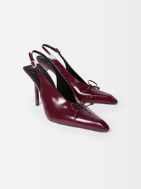 Sling-back pumps - Slingback pumps in glazed leather - Matching leather bow - Pointed geometric toe - Leather sole and lining - Embossed logo on insole - Round and square heels - Heel height: 10cm To protect the leather soles of all shoes, a transparent protective film has been applied to each sole. To remove it, please follow the direction of the arrow in order not to damage the leather sole. Made in Italy Ref. FOW00137AC18A03490
