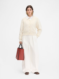 Jacquard logo cardigan - Relaxed fit - Alpaca wool blend - V-neck - Long sleeves - Ribbed cuffs and hem - Signature jacquard logo on back The model is 173 cm and wears a size S 56% Alpaga wool - 34% Polyamide - 10% Merino Wool Made in Portugal Ref. 251KN622-2329-130
