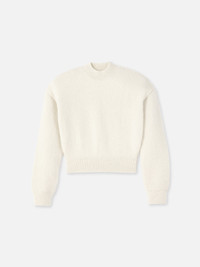 Les Classiques Logo jumper - Cropped, loose fit - Brushed alpaga knit - Crew neck - Fitted ribbed collar, cuffs and hem - Contrast jacquard logo on the back The model is 178 cm and wears a size XS 68% Alpaga wool - 22% Polyamide - 10% Merino wool Made in Portugal Ref. SWW00353AK00151130