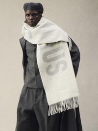 Fringe logo scarf - Wool fringe scarf - Solid color yarn - Jacquard logo - 12 cm fringe on each end - 180 x 35 cm 100% Wool Made in Italy Ref. ACU00435AOT4001950