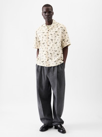 Duck print bowling shirt - Relaxed fit - Cotton poplin with Duck print - Camp collar - Boxy elbow-length sleeves - Back yoke - Printed logo on the back - Mother-of-pearl buttons The model is 187cm and wears a size 48 100% Cotton Made in Portugal Ref. SHM00200BW006911KK