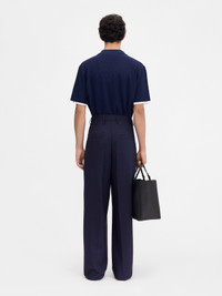 LA CASA Knit polo - Loose fit - Pique cotton - Boxy elbow-length sleeves - Polo collar - Silver metal buttons with engraved logo - Knit logo on back The model is 189 cm and wears a size M 65% Viscose - 35% Polyamide Made in Portugal Ref. 246KN296-2379-390
