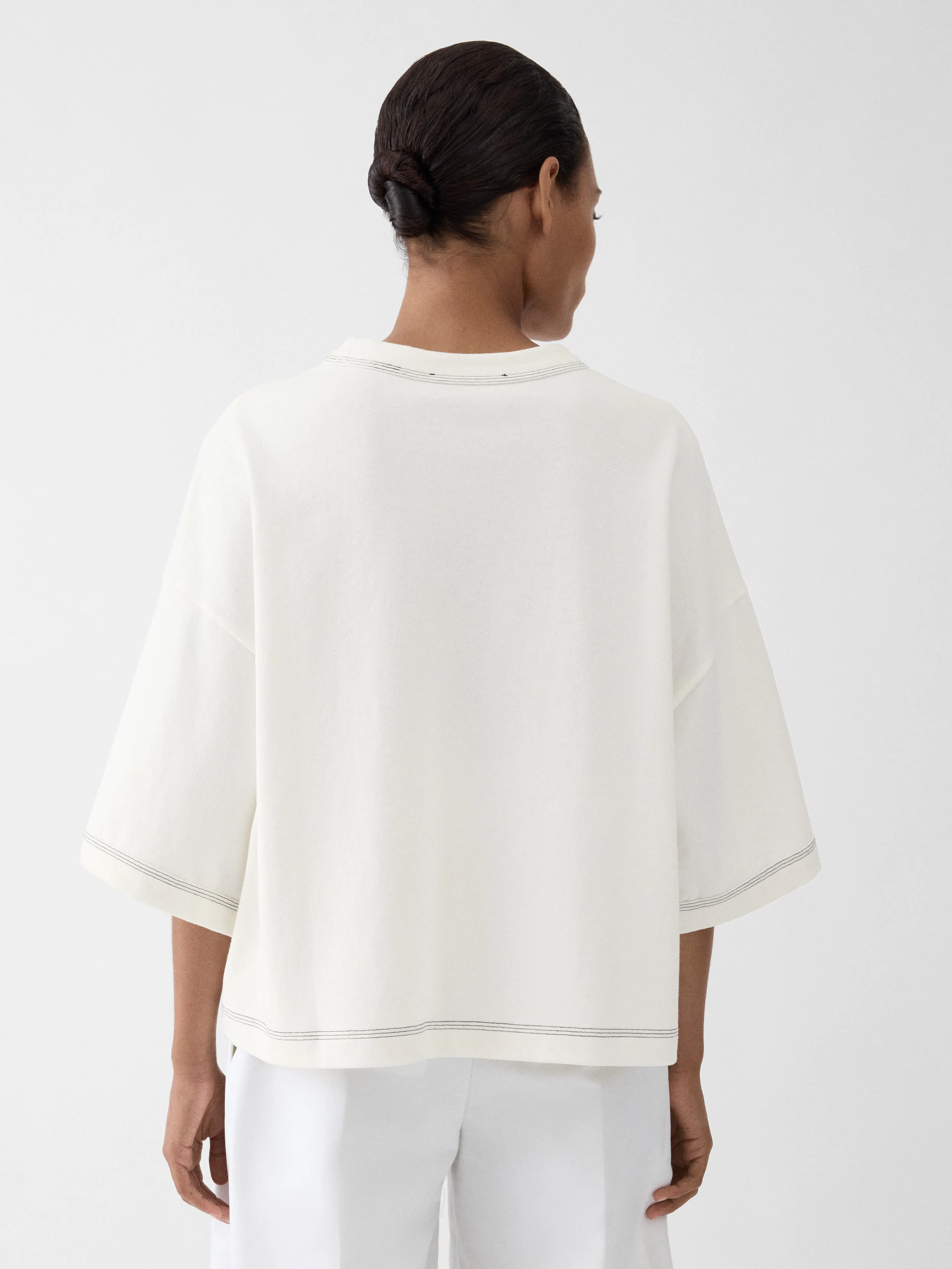 Embroidered monogram t-shirt - Cropped boxy fit - Cotton jersey - Crew neck - Embroidered “J” patch on the chest - Contrast stitching The model is 176cm and wears a size XS 100% Cotton Made in Portugal Ref. TSW00580AJ00226110