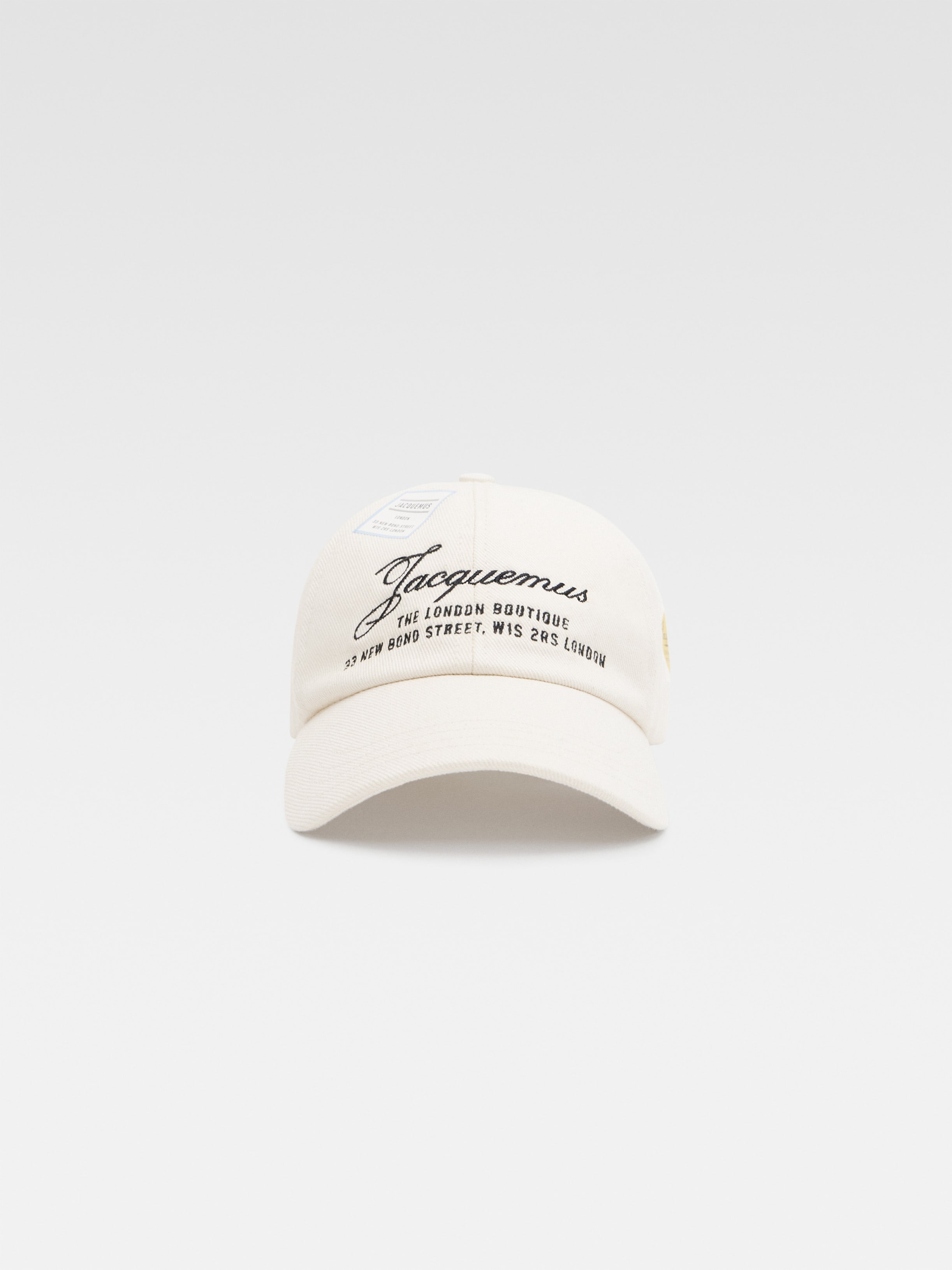 Logo cap - exclusively sold online and in our London boutique - Cotton canvas baseball cap - Top-stitched visor - JACQUEMUS logo embroidered on front - France and United Kingdom flags embroidered on back - Prints on sides - Round and square buckle on back - Exclusive model designed for the opening of the JACQUEMUS boutique in London 100% Cotton Made in France Ref. 256AC789-5012-110