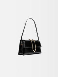 Long metal flap bag - Structured shoulder bag in glazed leather - Gold metal tab-outline closure - Thin shoulder strap - Removable shoulder strap - Back patch pocket with embossed logo - Interior card pocket - Gold metal hardware - Fully lined in cotton - 11 in x 5,3 in Each leather is unique and has been carefully selected by our team. To maintain the original condition of this item, we recommend to avoid direct and over-exposure to light and contact with cosmetics, water or heat. We advise to store this item into the dust bag in a dry place. 100% Calf Leather / Lining: 100% Cotton Made in Italy Ref. BAW00431AC18A01990