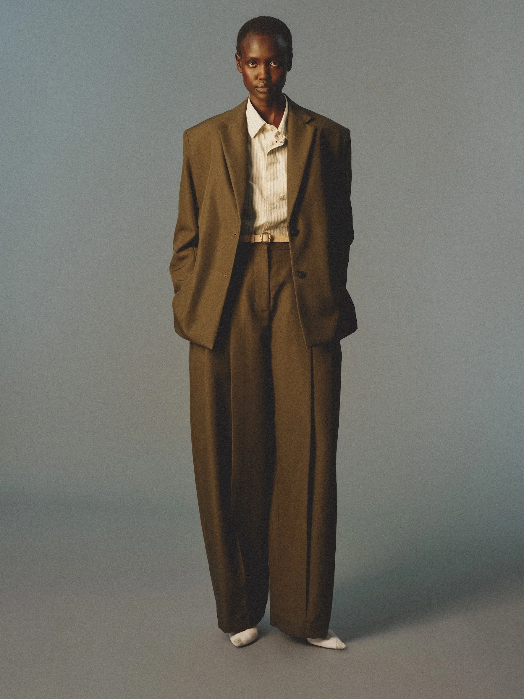Pleated pants - High-rise - Lightweight virgin wool - Waistband with belt loops - Zip fly with hook and button - Slash pockets - Double pressed-pleats - Wide curved leg - “J” belt loop in the back - Back welt pockets The model is 178cm and wears a size 34 100% Virgin wool / Lining: 55% Cotton - 45% Polyester Made in Bulgaria Ref. PAW00615AW00637580