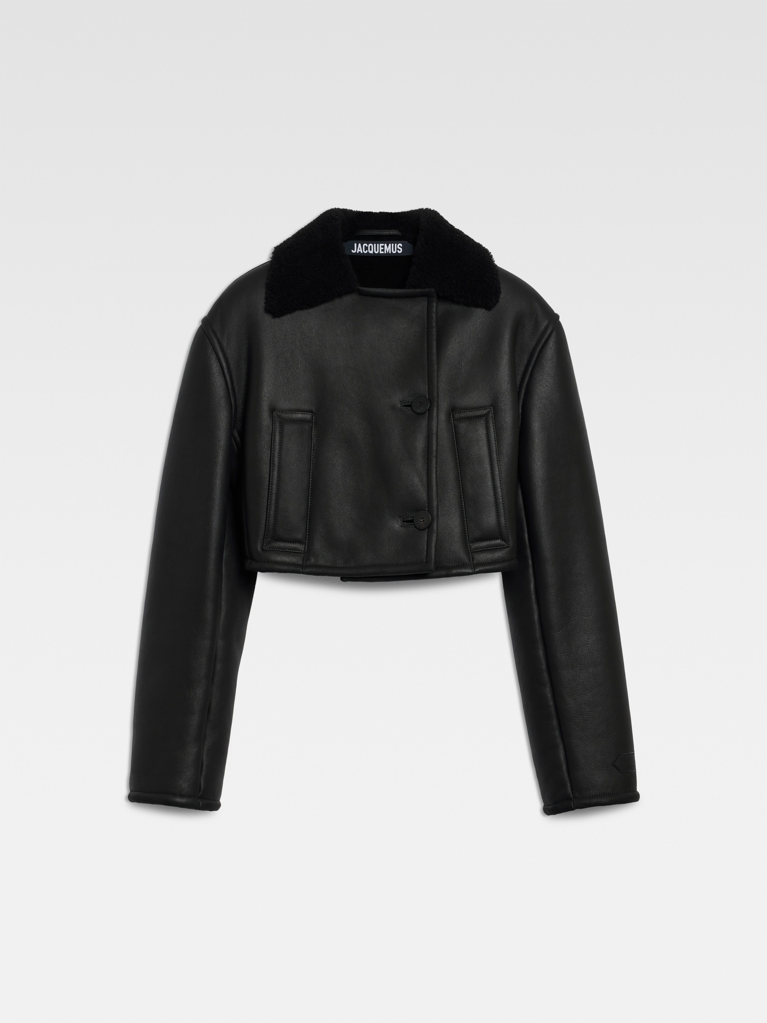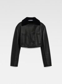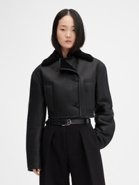 Double-breasted shearling jacket - Straight fit - Leather exterior and soft fleece interior - Shearling collar - Long sleeves - Large welt pockets - Embroidered patch on lower left sleeve - Double stitched seams - Back yoke - Corozo buttons - Calisson logo patch on lower left sleeve The model is 175cm and wears a size 34 100% Sheepskin / Lining: 100% Cotton Made in Turkey Ref. 251CO096-1664-990