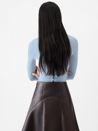 Sheer knit polo - Fitted shape - Light merino blend knit - Ribbed hem - Embroidered “J” on the collar - Long polo placket - Stretched open buttonholes - Fitted buttoned sleeves - Fully buttoned back - Small horn buttons The model is 177cm and wears a size 34 98% Merino Wool - 2% Polyamide Made in Romania Ref. POW00806AK00145330