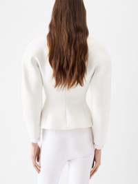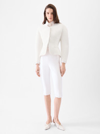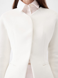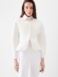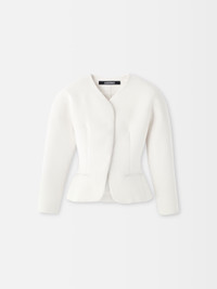 Cropped fitted jacket - Cropped fitted shape - Bonded tailoring wool - Collarless - Cropped rounded sleeves - Hidden buttoned closure - Fitted waist - Jetted pockets The model is 178cm and wears a size 34 Made in Bulgaria Ref. JAW00103AW00531100