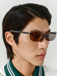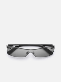 LA CROISIERE Frameless sunglasses - Continuous lens sunglasses - Opaque acetate arms - Tinted lenses - UV 400 protection - Silver logo on outside of temple - Printed logo on the inside temple - Circle and square stainless steel rivets 100% Acetate Made in Japan Ref. 255AC749-5121-960