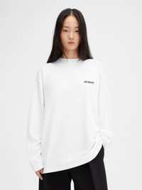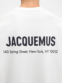 Long sleeve t-shirt with printed address and logo - Regular fit - Ribbed crewneck - Printed logo on chest - Printed address of the Jacquemus boutique on back - Exclusive model designed for the opening of the JACQUEMUS boutique in New York Men: The model is 185cm and wears a size M Women: The model is 175cm and wears a size S 100% Cotton Made in Portugal Ref. 245JS150-2099-1HV