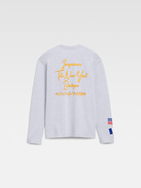 Long-sleeved logo t-shirt - Long-sleeved cotton t-shirt - Loose fit - Ribbed collar - "J" logo embroidered on front - Boutique address embroidered on back - Satin-finish France flag on sleeve - United States flag embroidered on sleeve - Exclusive model designed for the opening of the JACQUEMUS boutique in New York Men: The model is 187cm and wears a size M Women: The model is 179cm and wears a size S 100% Cotton Made in Portugal Ref. 255JS400-2475-9NY
