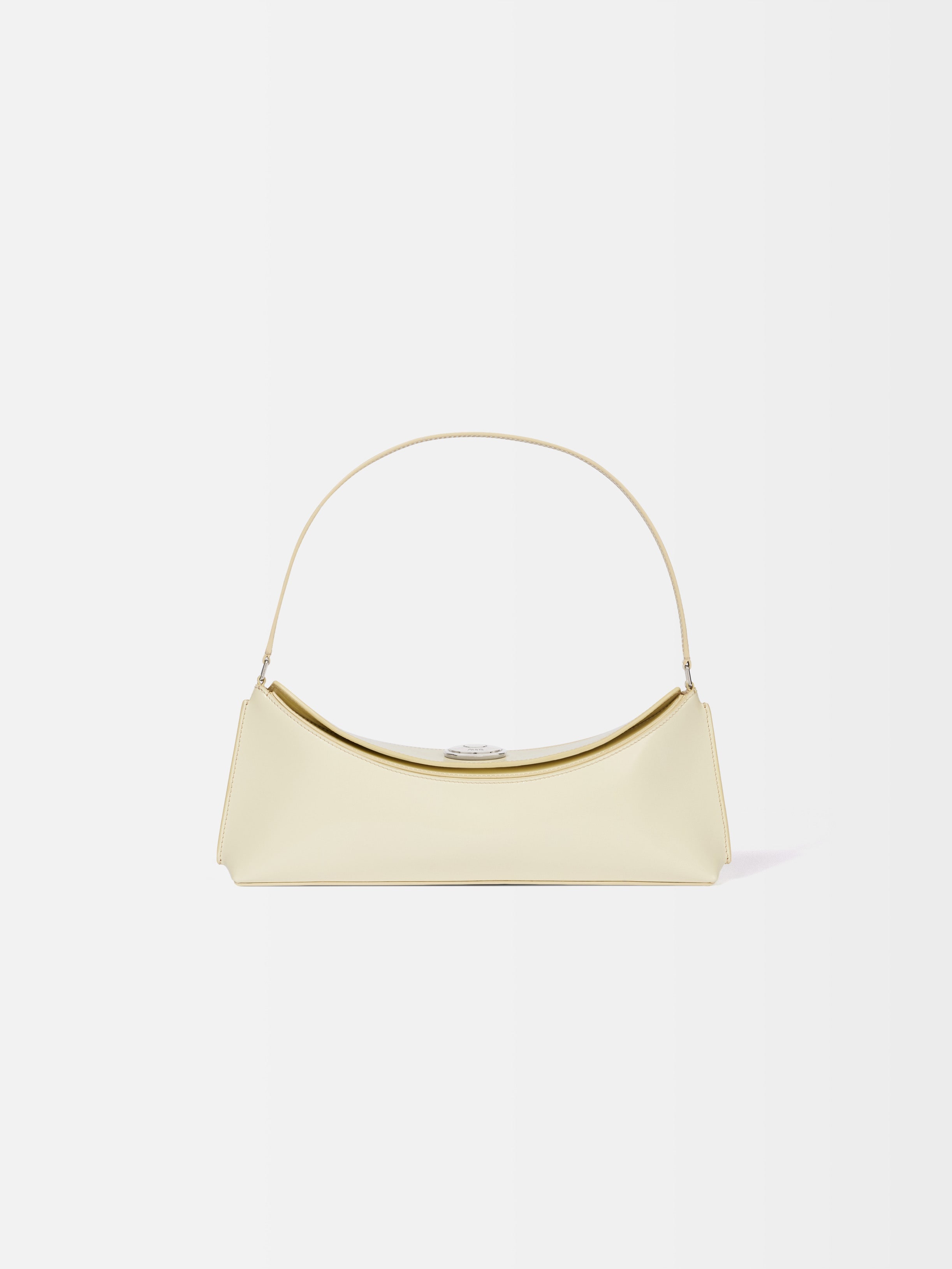 Folded shoulder bag - Shoulder bag in glazed leather - Slim shoulder strap - Magnetic flap with large engraved snap fastener - Fully lined in cotton - Interior card pocket - 13.7 in x 3.9 in x 1.5 in Each leather is unique and has been carefully selected by our team. To maintain the original condition of this item, we recommend to avoid direct and over-exposure to light and contact with cosmetics, water or heat. We advise to store this item into the dust bag in a dry place. 100% Calf Leather / Lining: 100% Cotton Made in France Ref. BAW00438AC18A01220