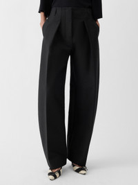 Curved pants - High-waisted - Compact cotton canvas - Wide, curved fit - Grown-on waist - Belt loops - Zip fly with hook and button - Stitched pleats - Side-seam pockets - Split waistband in the back - Back welt pocket with "J" button loop - Fully lined The model is 176cm and wears a size 34 100% Cotton / Lining : 96% Cotton - 4% Elastane Made in Bulgaria Ref. PAW00079AW00741990