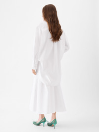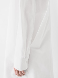 Oversized shirt dress - Short straight fit - Crisp cotton poplin - Pointed collar - Rounded sleeves - Rounded buttoned cuffs with pleats - Embroidered “J” on the sleeve - Back yoke with pleat - Rounded hem that is short in front and knee-length in the back - Mother-of-pearl buttons The model is 178cm and wears a size 34 100% Cotton Made in Bulgaria Ref. DRW00686AW00648100