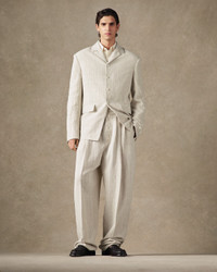Long tailored jacket - Straight fit with structured shoulders - Tailoring wool - Notched lapel - Flap pockets - Embroidered logo patch on the sleeve - Back vent - Interior welt pocket - Fully lined - Horn buttons The model is 189cm and wears a size 48 64% Cotton - 36% Linen / Lining: 52% Viscose - 48% Cotton Made in France Ref. JAM00090AW007041KE