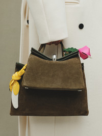 Origami radish-shaped bag charm - Radish in smooth leather with leaves in grained leather - Embossed logo - Grained leather strap of 13 cm long - 7 cm x 4 cm x 3.5 cm Each leather is unique and has been carefully selected by our team. To maintain the original condition of this item, we recommend to avoid direct and over-exposure to light and contact with cosmetics, water or heat. We advise to store this item into the dust bag in a dry place. 100% Cow leather Made in Italy Ref. SLU00367AC03C124FG