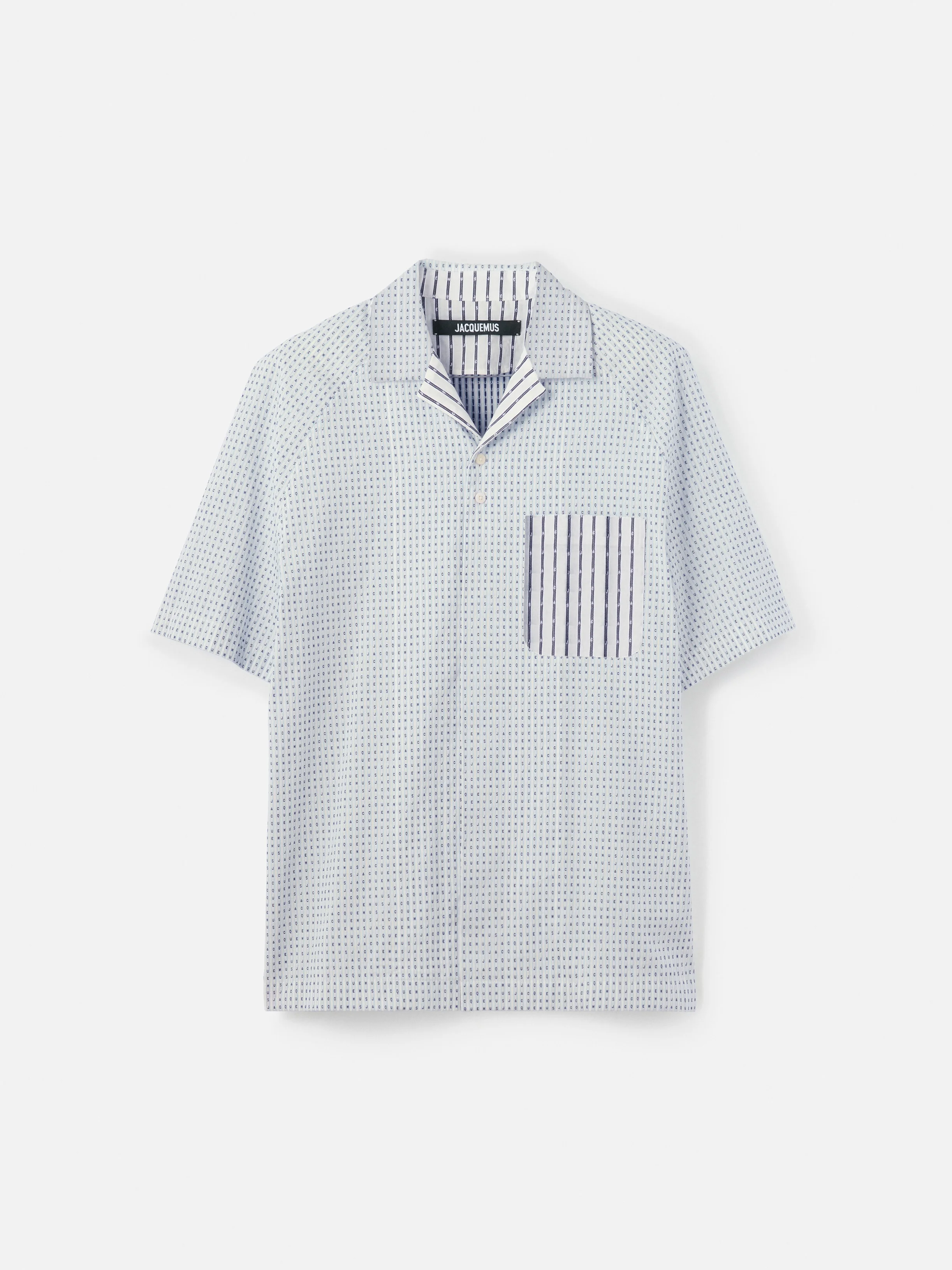Typewriter raglan bowling shirt - Relaxed fit - Typewriter logo striped cotton jacquard - Camp collar - Raglan sleeves - Boxy elbow-length sleeves - Patch chest pocket - "J" loop on the back - Pleated back - Faux horn buttons 100% Cotton Made in Portugal Ref. SHM00573AW007781LY