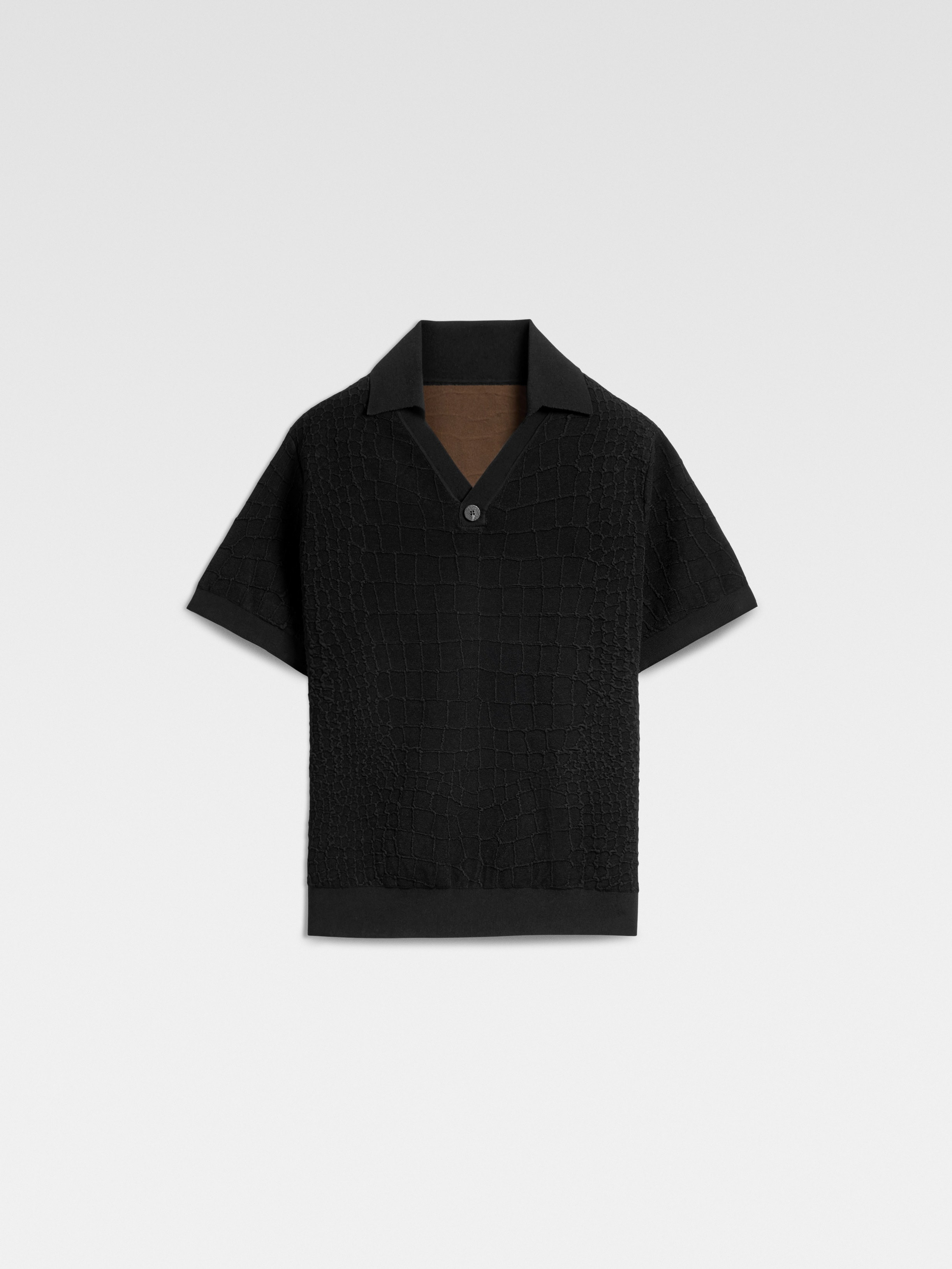 Crocodile polo - Relaxed fit - Stretch viscose - Crocodile embossed stretch viscose - V-neck polo collar - Decorative corozo button with crocodile pattern - “J” locker loop The model is 192cm and wears a size M 57% Viscose - 37% Polyamide - 6% Elastane Made in Portugal Ref. 255KN527-2429-990