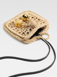 LA CROISIERE Raffia AirPods holder - Flat woven-raffia AirPods holder - Square shape - Long leather strap - Knot closure - Reinforced braided edges - Gold metal Rond-Carre charms - Dimensions: 10 x 10cm - Strap length: 48cm 100% Raffia Made in Madagascar Ref. 251SL143-3219-142