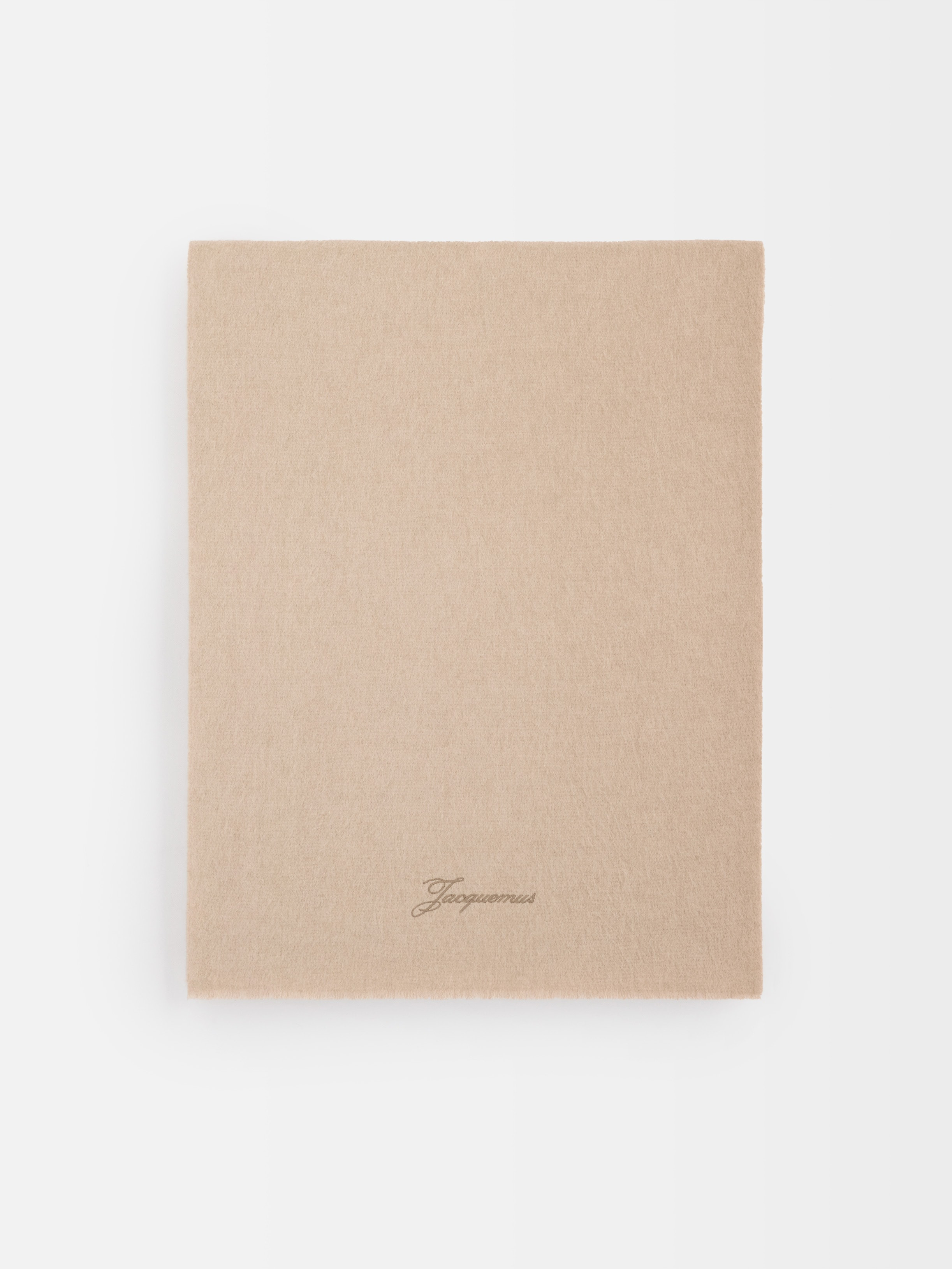 Long embroidered scarf - Long scarf in wool and cashmere blend - Textured jacquard knit - Embroidered logo - Fine fringe - Dimensions: 45cm x 195cm + 35cm + 35cm (Including fringe) 80% Wool - 20% Cashemere Made in Italy Ref. ACU00792AK00290150