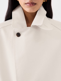Relaxed trench coat - Long loose fit - Water-repellent cotton gabardine - Convertible lapel with buttoned throat latch - Hidden buttoned closure - Adjustable belt with belt loops in the back - Square horn buckle - Wide trench pockets - Elasticated cuffs with snap buttons - Buttoned back slit - Contrast crocodile-embossed horn buttons The model is 175cm and wears a size 38 90% Cotton - 10% Polyurethane / Lining: 55% Cotton - 45% Polyester Made in France Ref. COW00102AW00644110