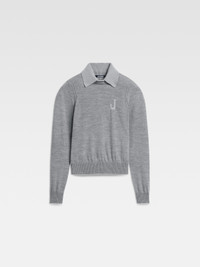 "J" logo knit polo - Fitted shape - Merino wool - Ribbed polo collar - “J” logo on chest - Long sleeves - Ribbed hem and cuffs with contrast stripe The model is 178cm and wears a size 34 68% Wool - 26% Viscose - 3% Polyamide - 3% Polyester Made in Romania Ref. 251KN595-2431-950