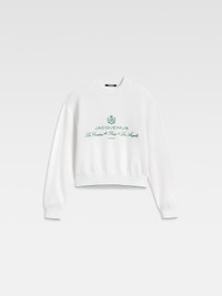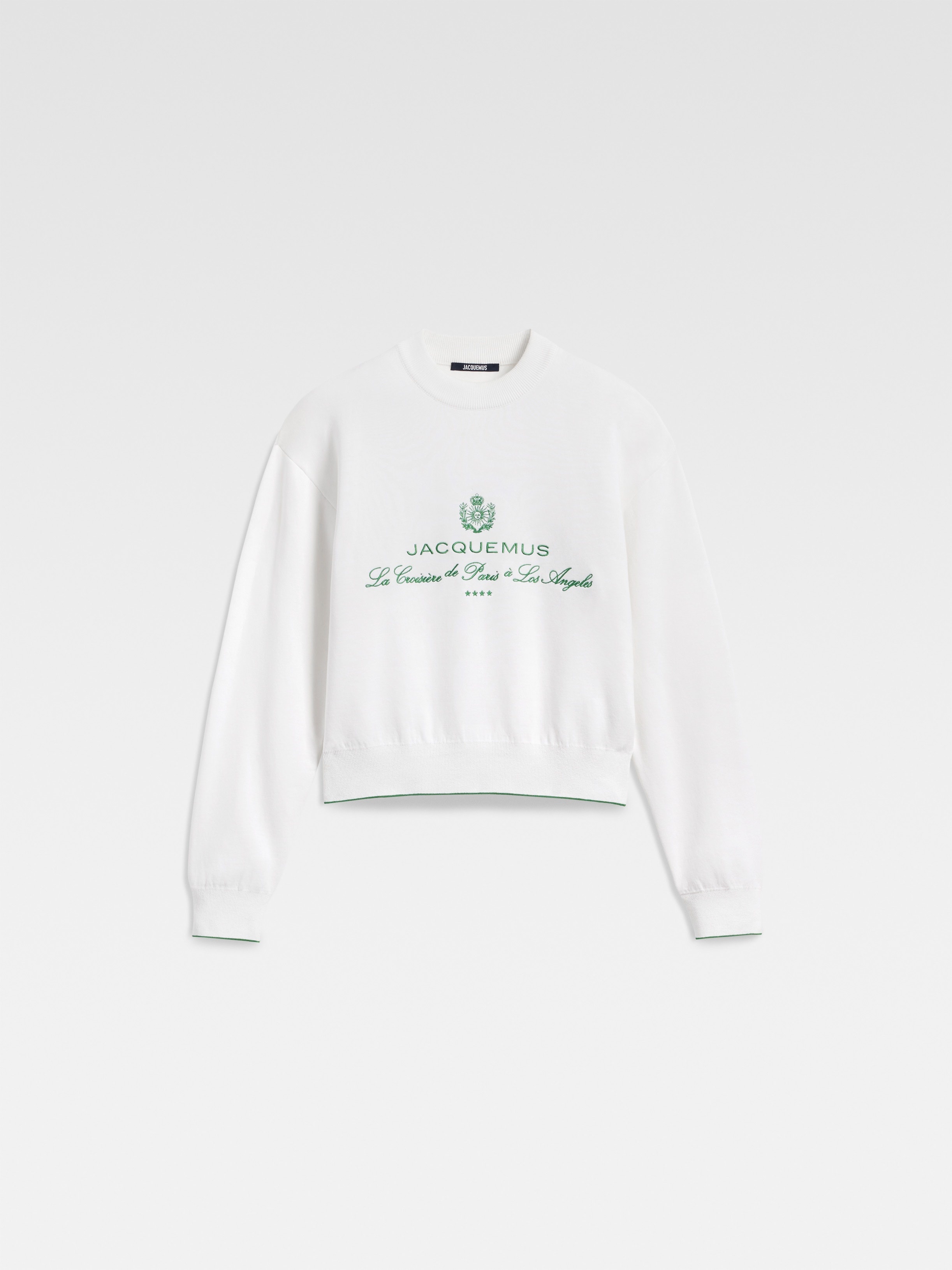 LA CROISIERE Jacquemus Cruise sweater - Relaxed fit - Double ribbed cotton viscose blend - Ribbed crew neck - Long sleeves - Jacquemus Cruise embroidery - Ribbed hem and cuffs with contrast stripe The model is 178cm and wears a size 34 53% Cotton - 42% Viscose - 5% Polyamide Made in Italy Ref. 251KN619-2427-1IN