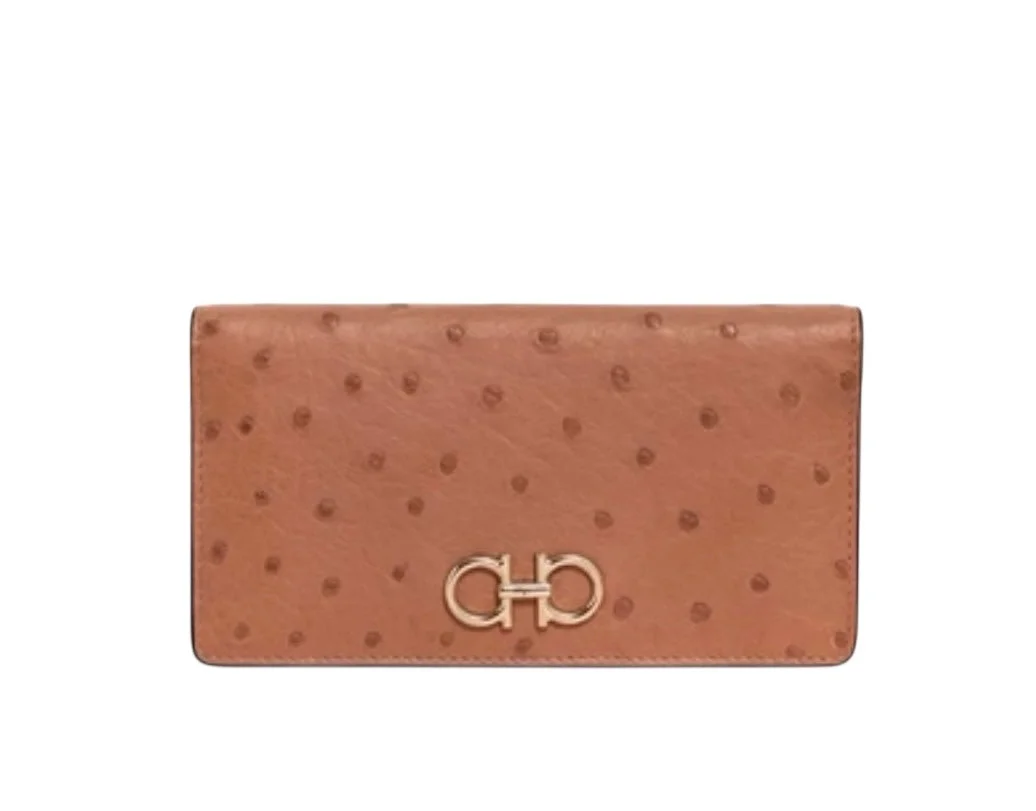 Ferragamo Gancini Ostrich Wallet 0760284 S1183BROWN All sales are final. We only accept returns if there is a quality issue.