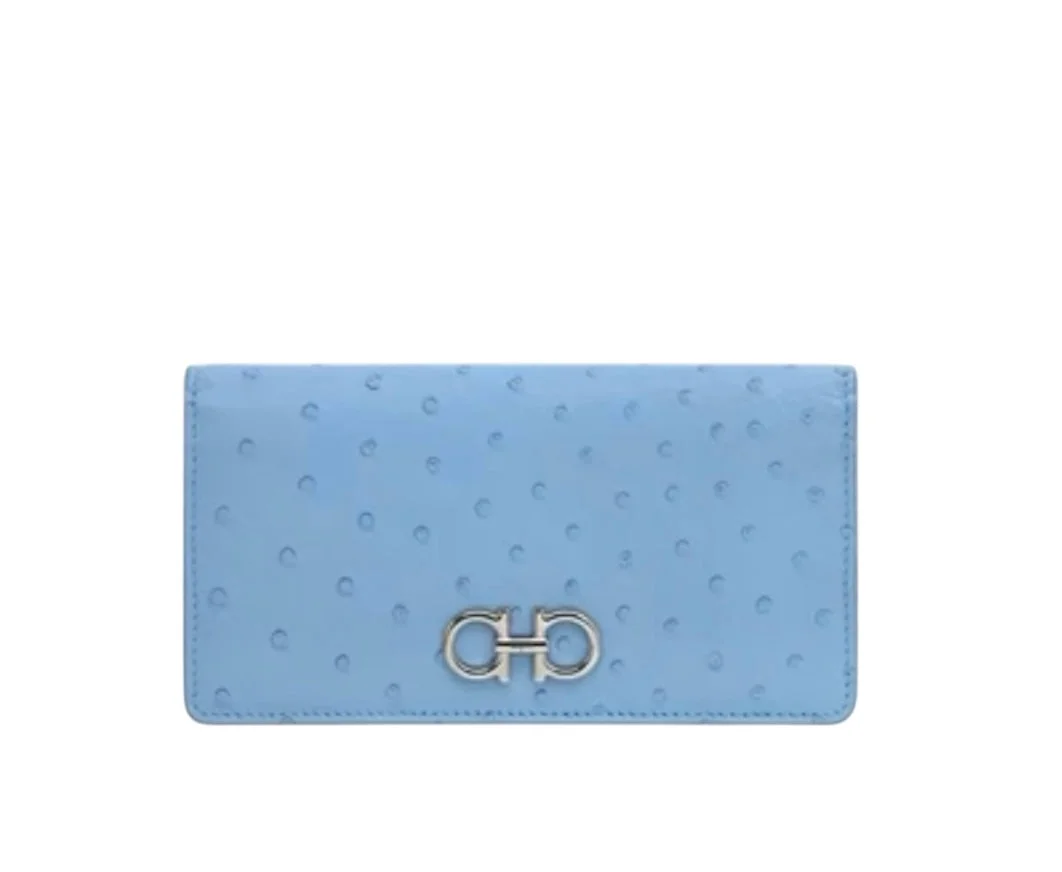 Ferragamo Gancini Ostrich Wallet 0776943 S1183BLUE All sales are final. We only accept returns if there is a quality issue.
