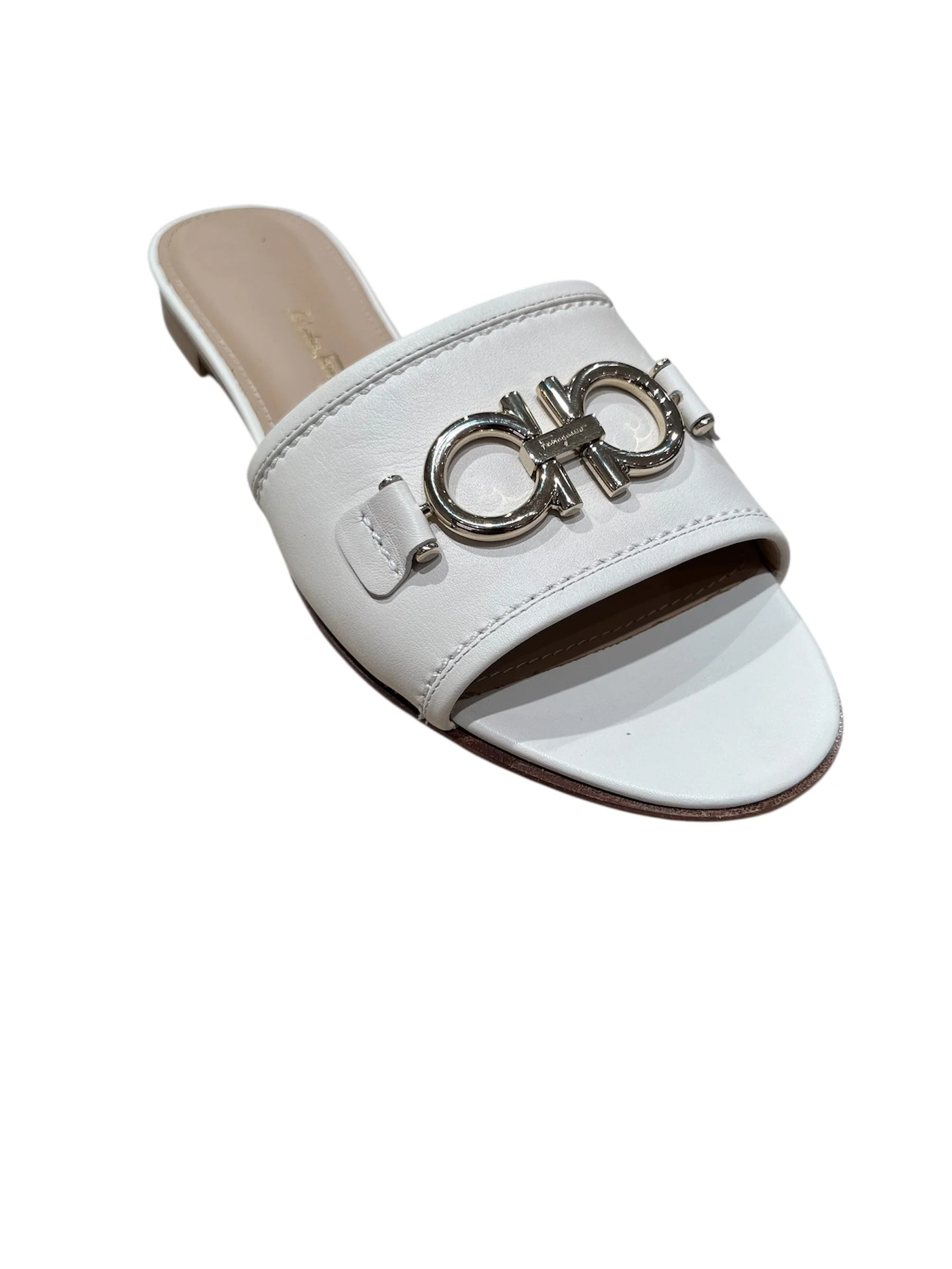 Ferragamo Logo Rhodes Slide Sandals 0790434 S581WHITE All sales are final. We only accept returns if there is a quality issue.