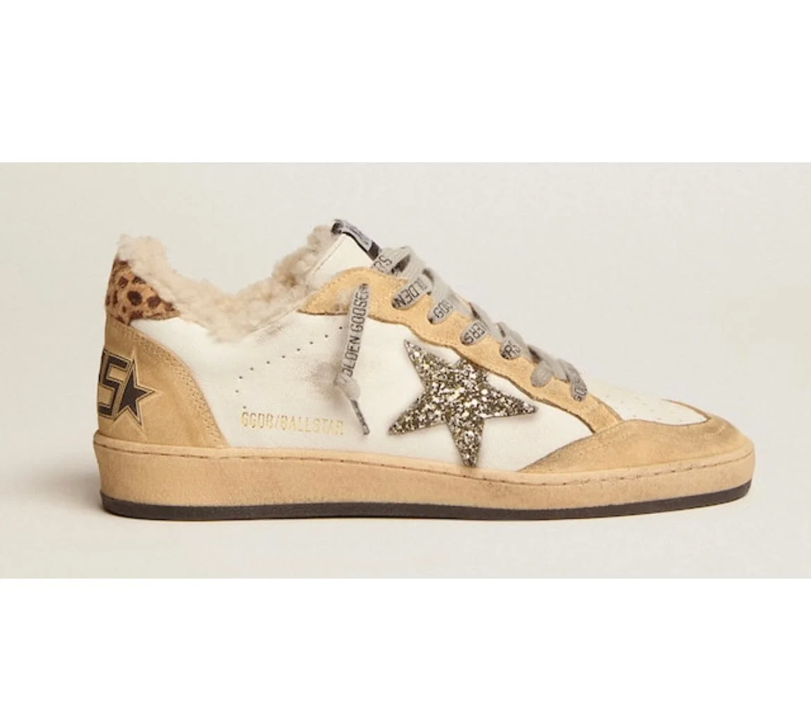 Ball Star sneakers in nappa leather with glitter star and shearling lining