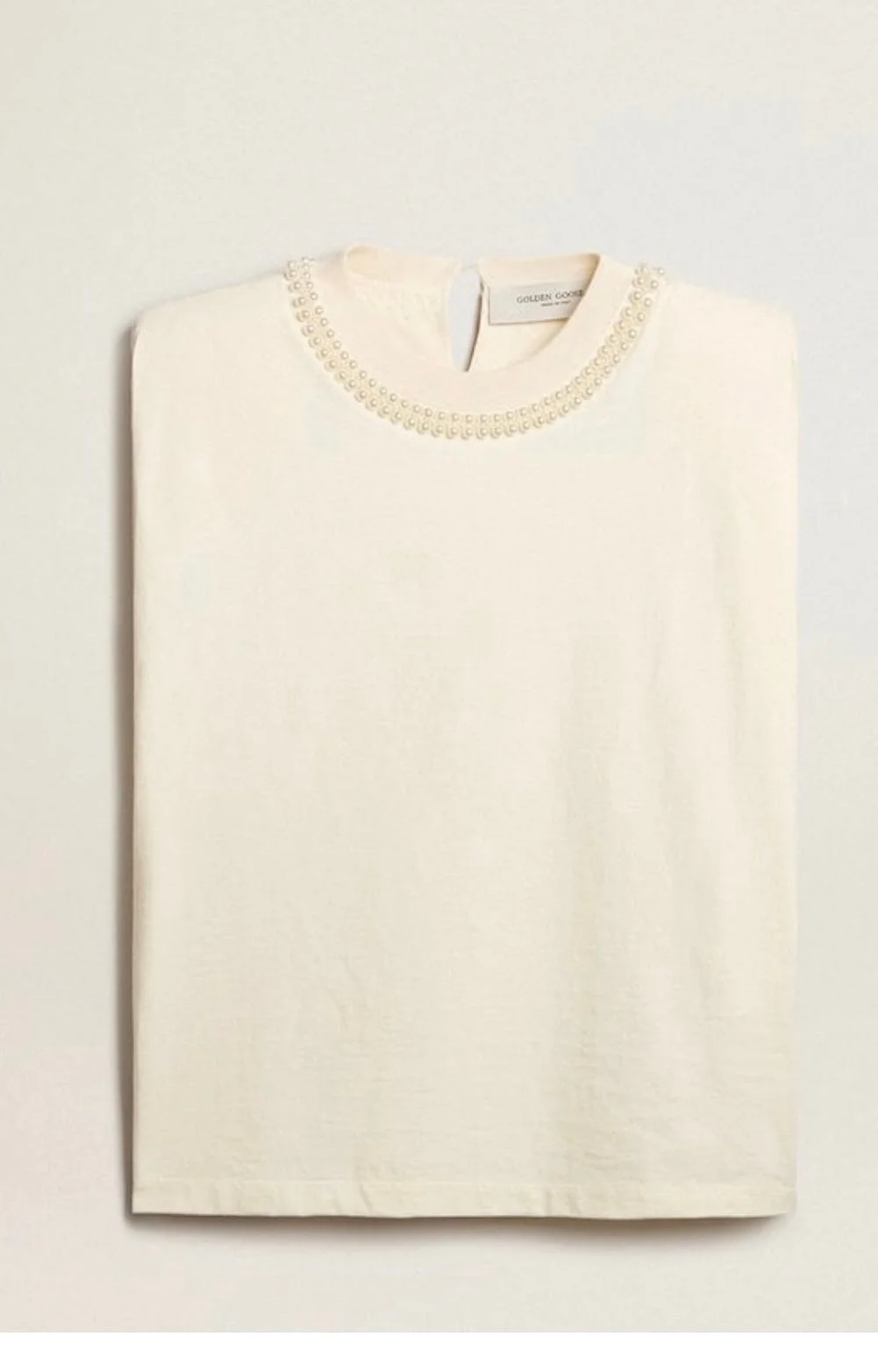 Aged white sleeveless T-shirt with pearl embroidery