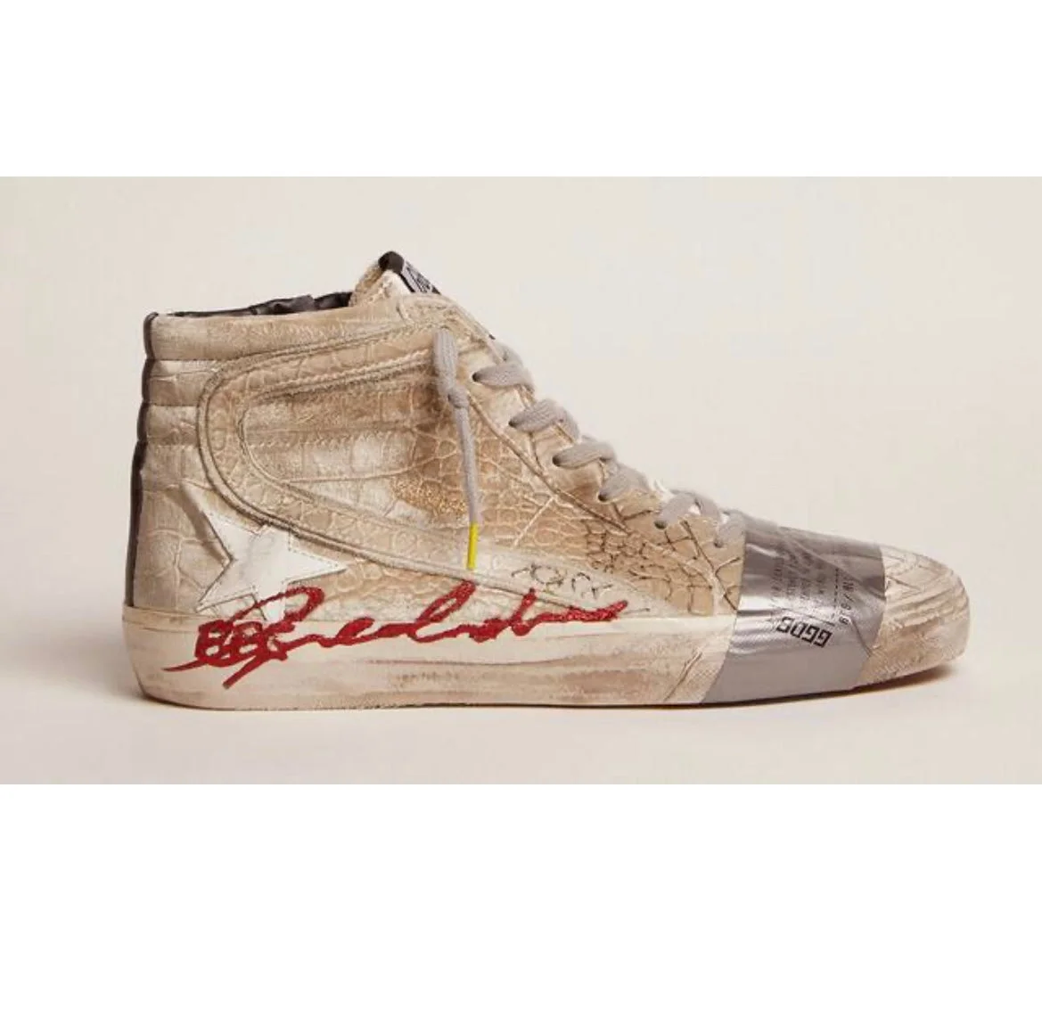 Slide LAB sneakers with silver velvet upper and crocodile print