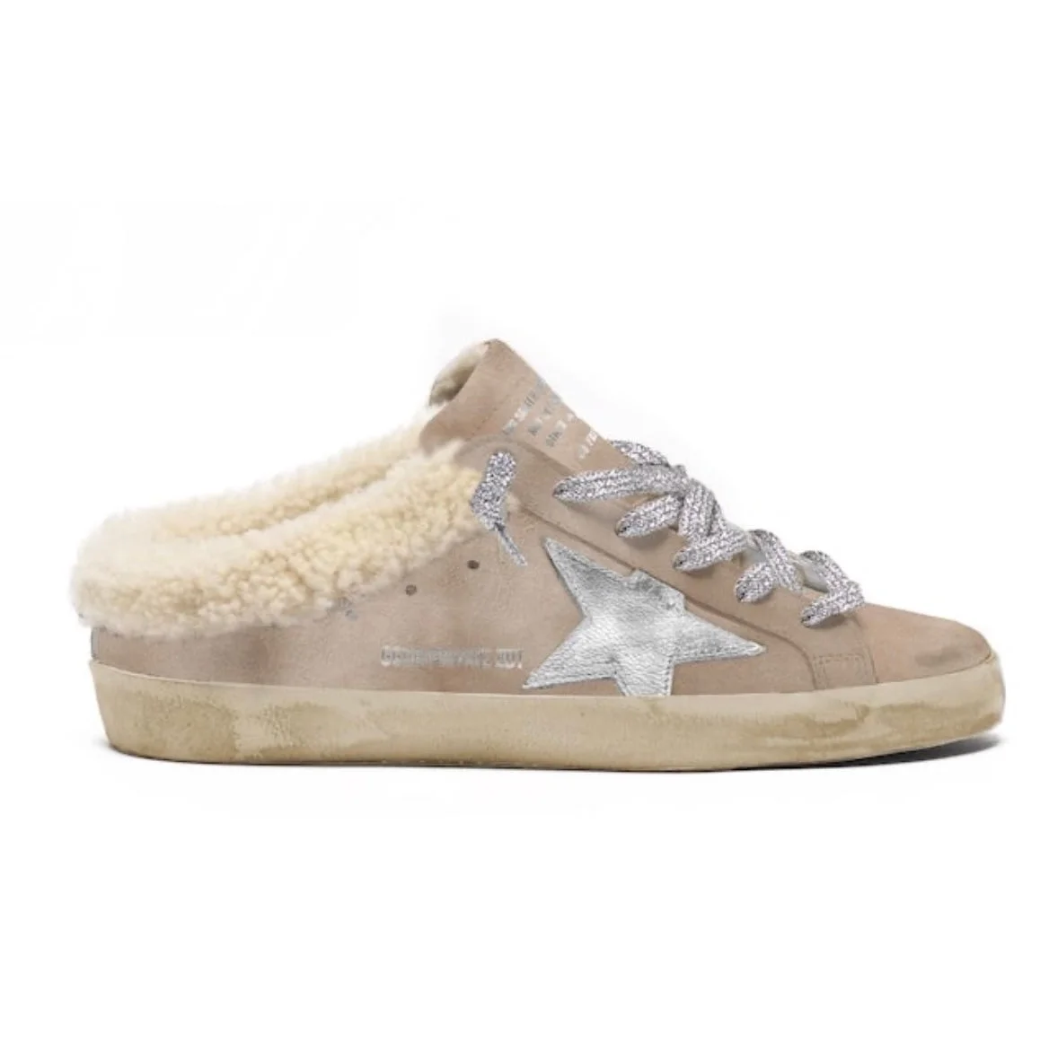 Golden Goose Super Star Sabot Wool Sneakers GWF00110.F004299.55528 S557BRROWNSILVER All sales are final. We only accept returns if there is a quality issue.