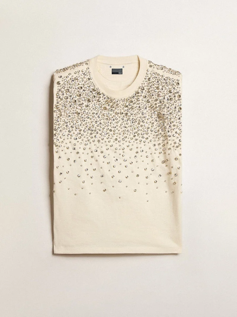 Golden Goose Swarovski embroidery T-shirt GWP01449.P001552.11829 S535CREAM All sales are final. We only accept returns if there is a quality issue.