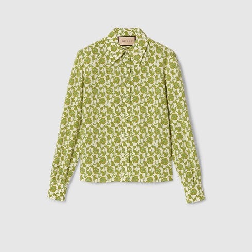 Gucci Floral Print Silk Crepe De Chine Shirt