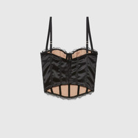 Lace-trimmed embroidered cotton-blend tulle and satin bustier top