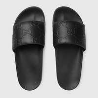 Gucci GG Slide Sandals Code 681880S250 Black leather All sales are final. We only accept returns if there is a quality issue.