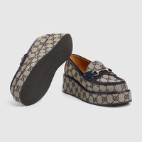 Gucci Horsebit GG Canvas Wedge Loafers